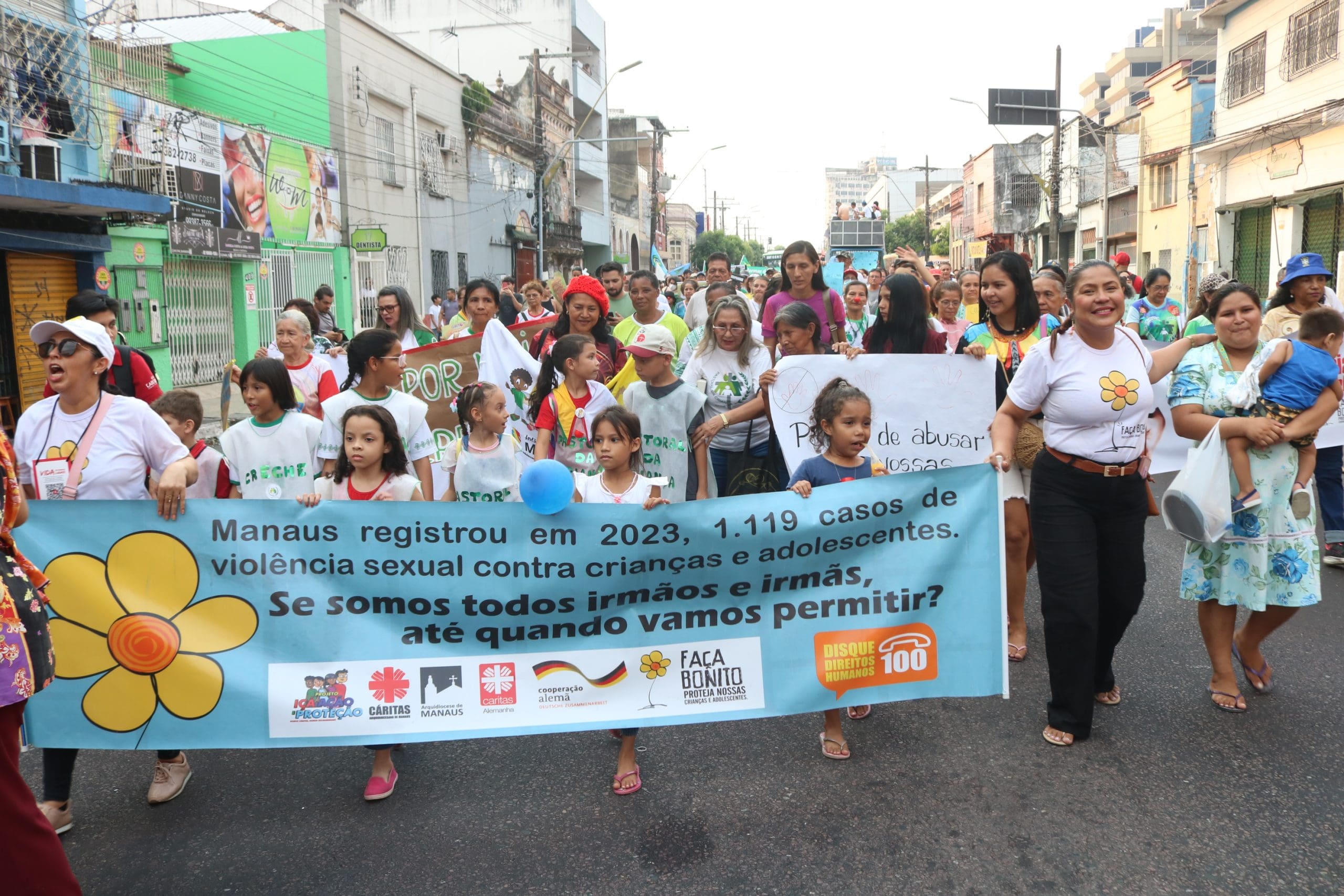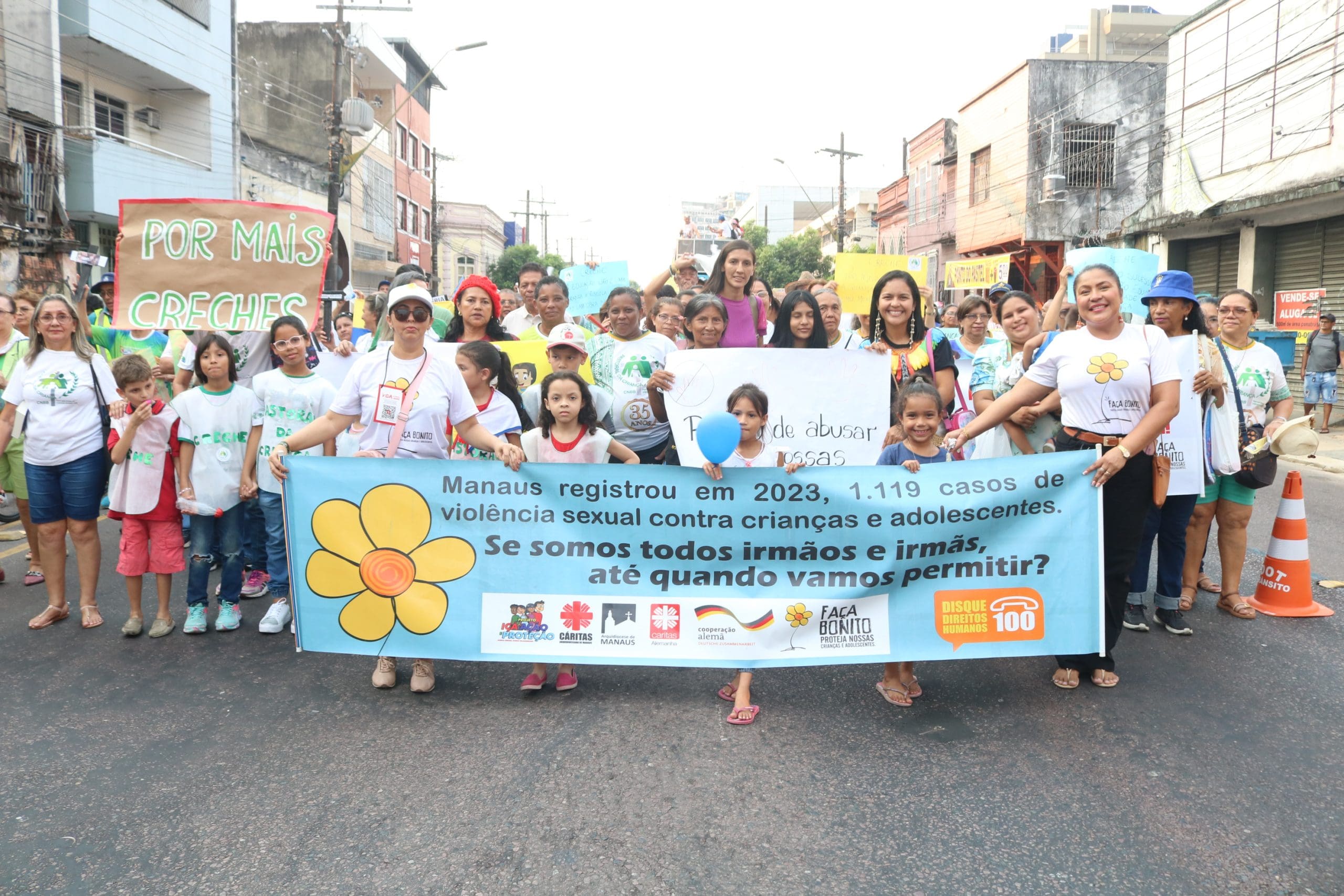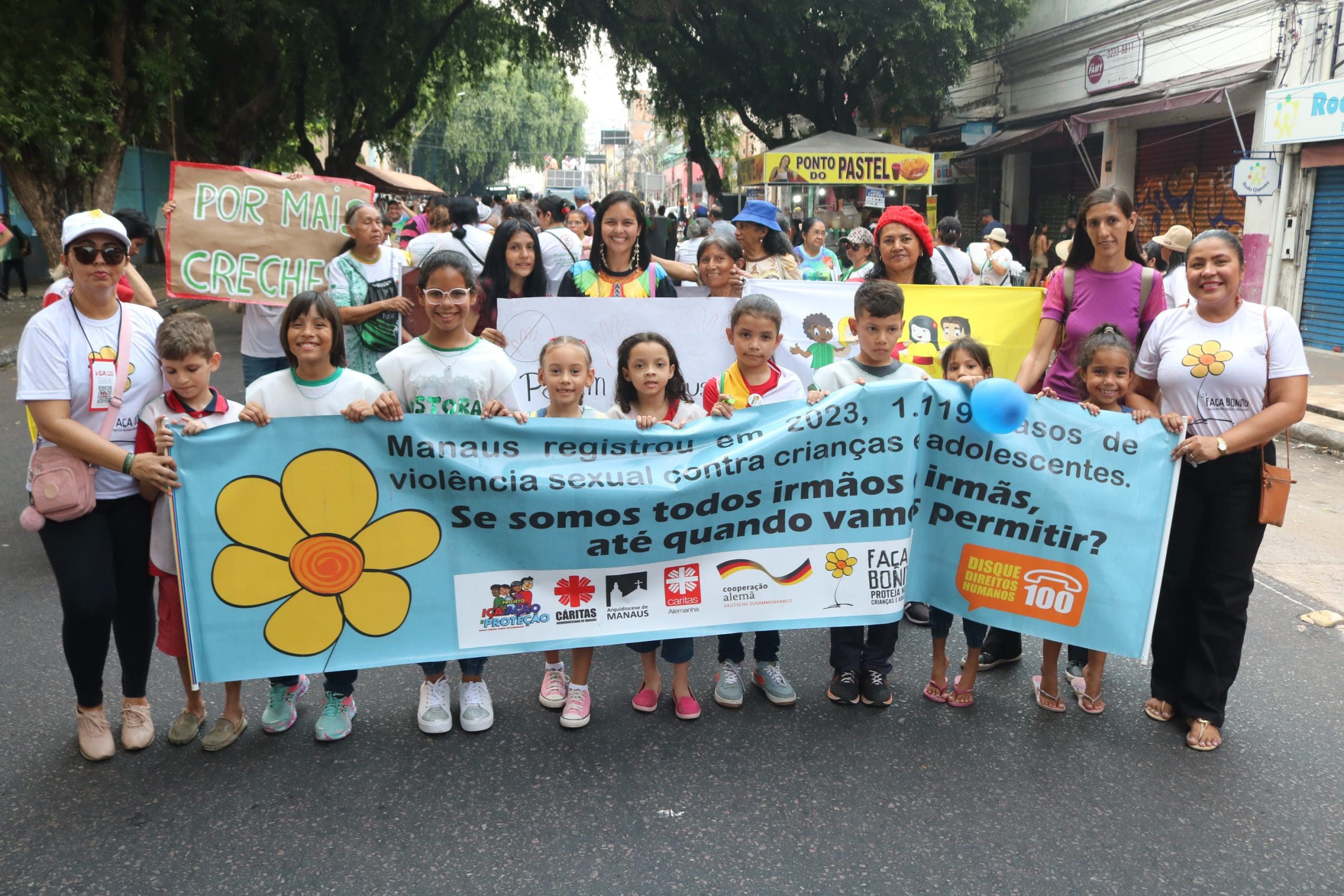 O Projeto Içá Ação e Proteção da Cáritas Arquidiocesana de Manaus esteve presente no ato, manifestando o grito contra o abuso e a exploração sexual de crianças e adolescentes. Agentes da Cáritas também estiveram na parte logística do evento, distribuindo água aos participantes.