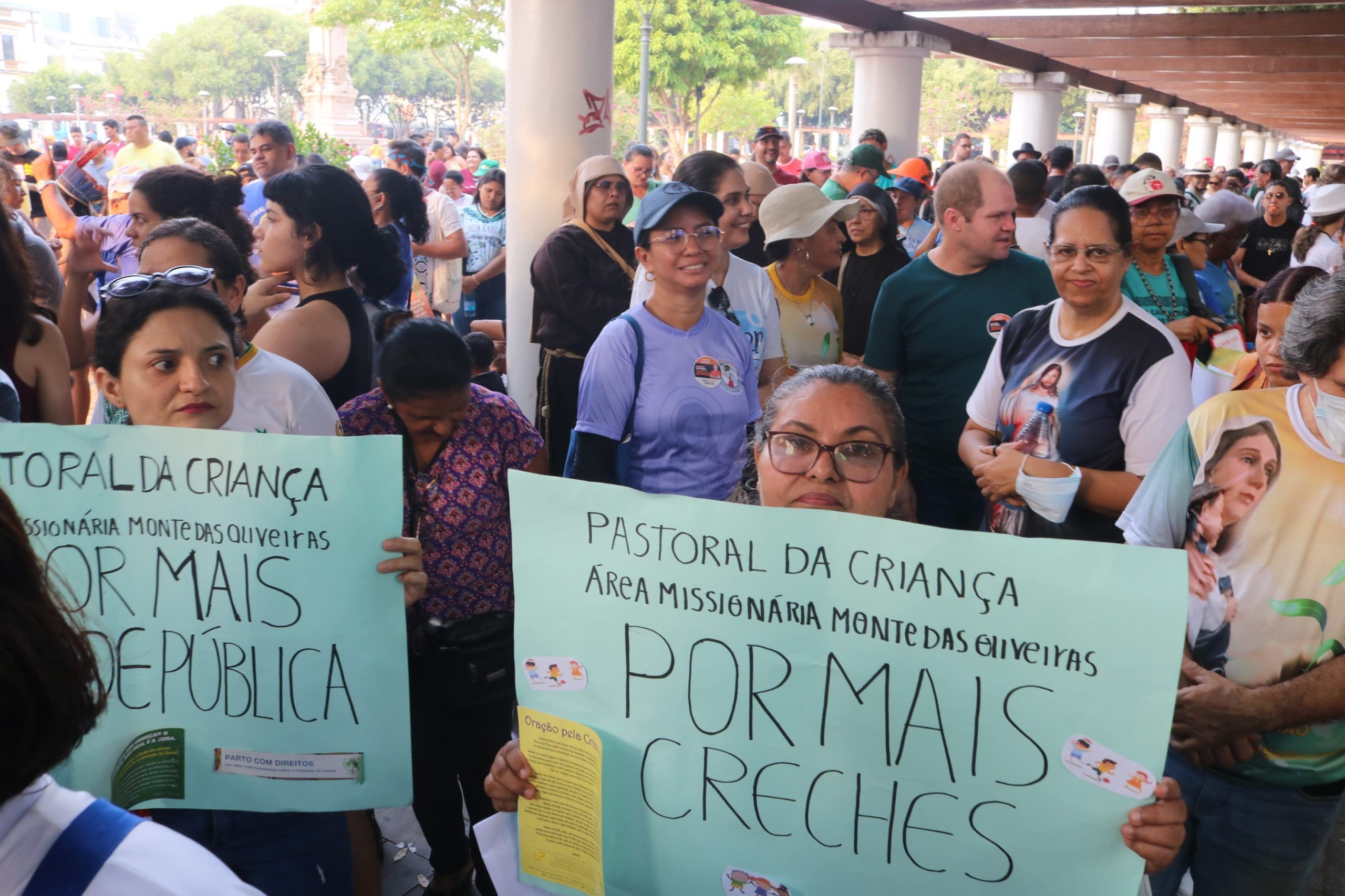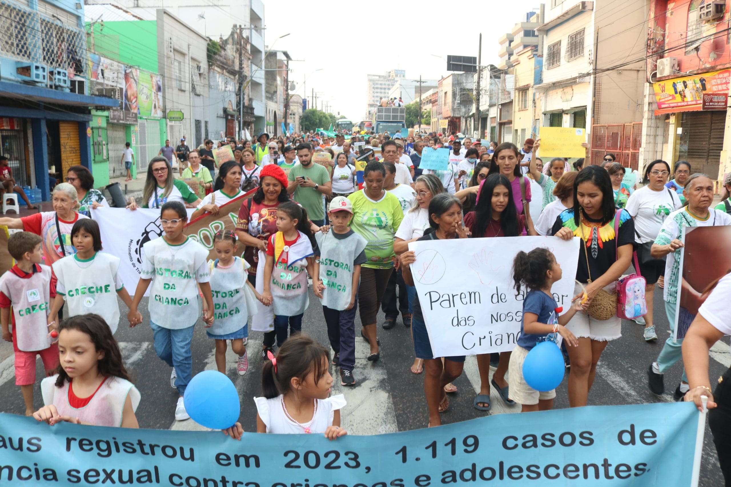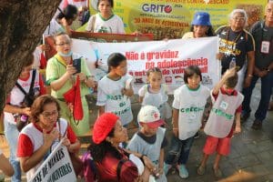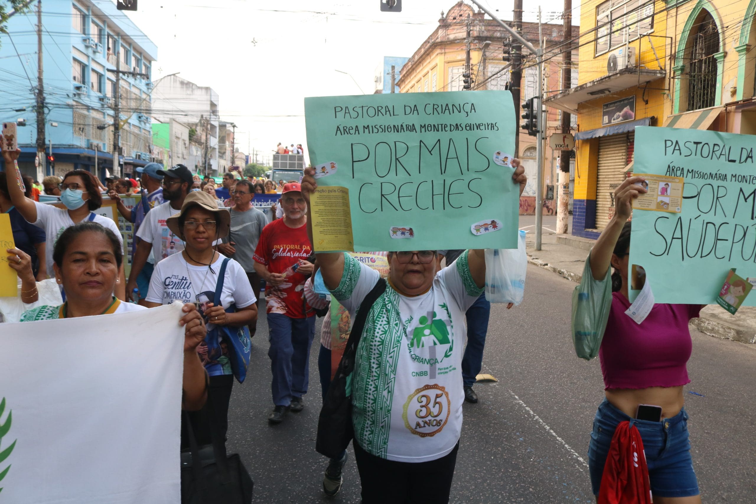 O Projeto Içá Ação e Proteção da Cáritas Arquidiocesana de Manaus esteve presente no ato, manifestando o grito contra o abuso e a exploração sexual de crianças e adolescentes. Agentes da Cáritas também estiveram na parte logística do evento, distribuindo água aos participantes.