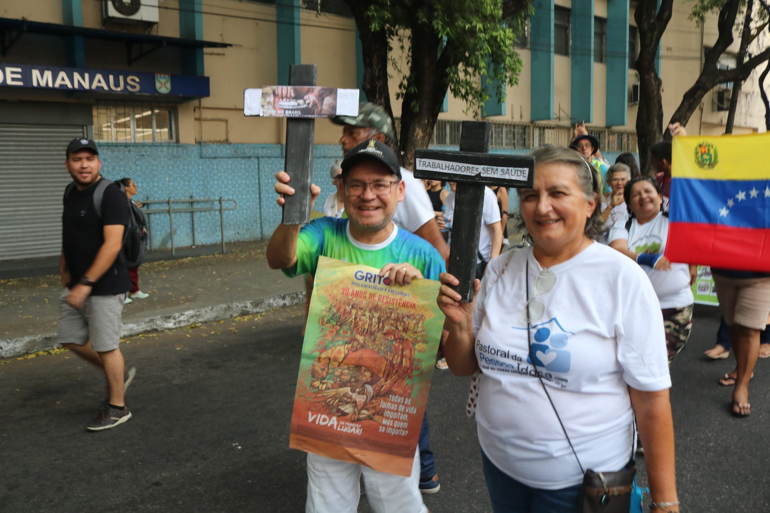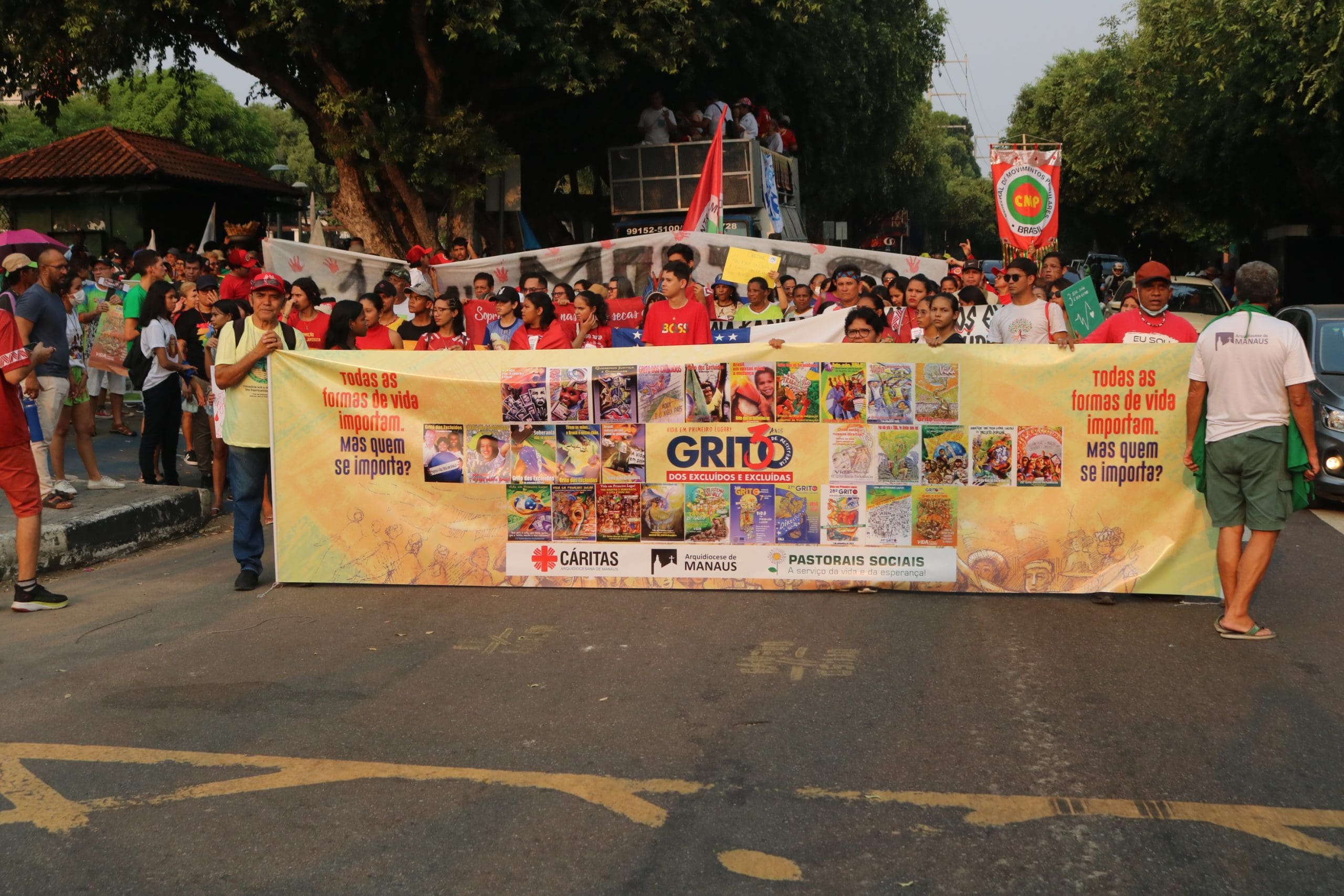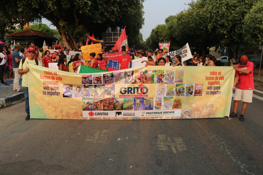 Na tarde desta quinta-feira, 5 de setembro, dia da Amazônia, pastorais sociais da Arquidiocese de Manaus e movimentos populares reuniram-se no centro de Manaus para o 30º Grito dos Excluídos e Excluídas, este ano com o tema ‘Vida em Primeiro Lugar!’ e o lema: ‘Todas as formas de vida importam, mas quem se importa?’. A temática central das manifestações foi o grito por melhorias na saúde pública do estado.