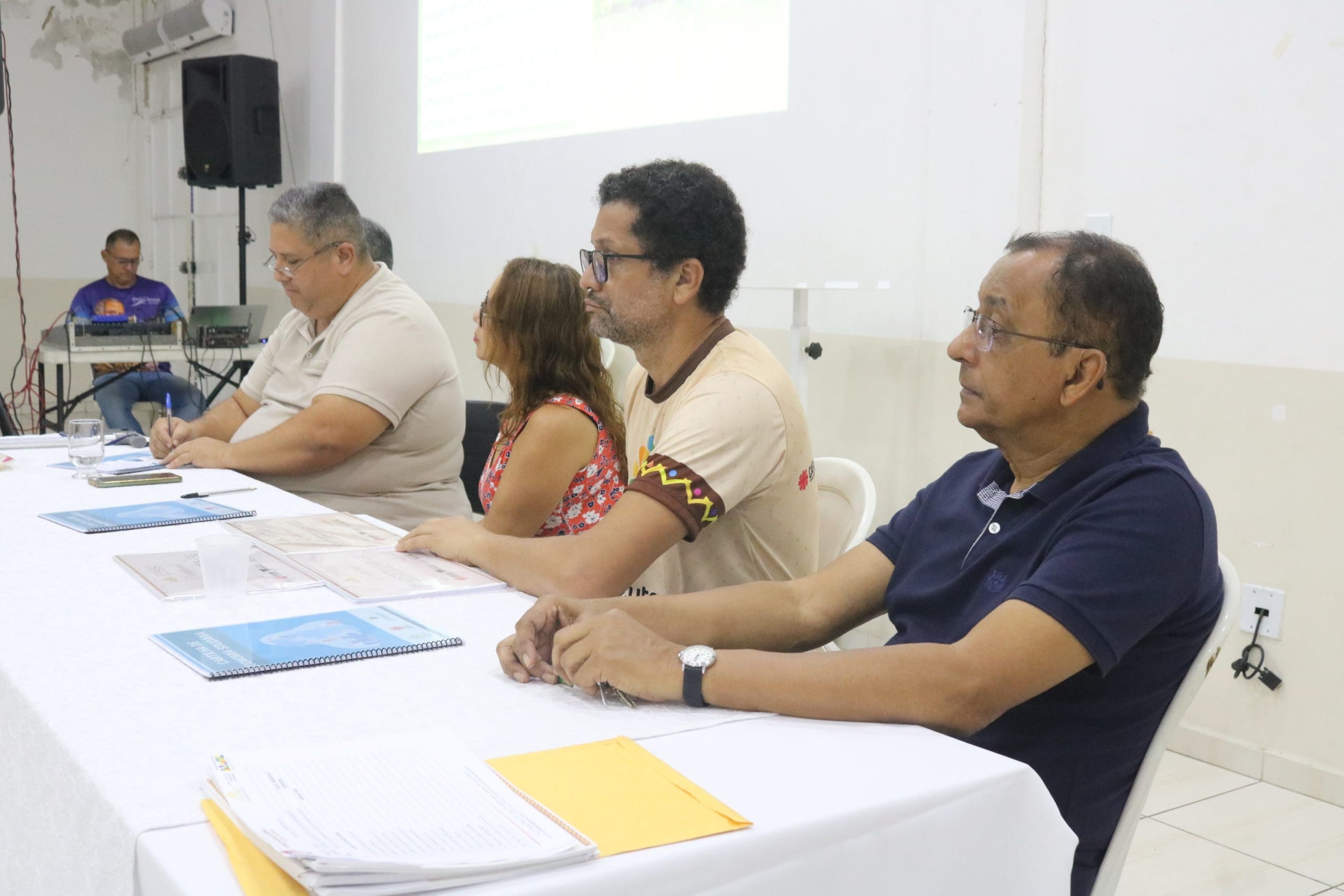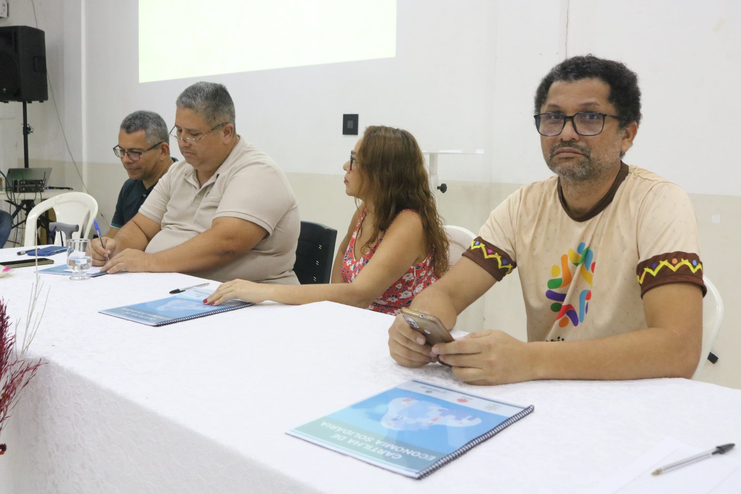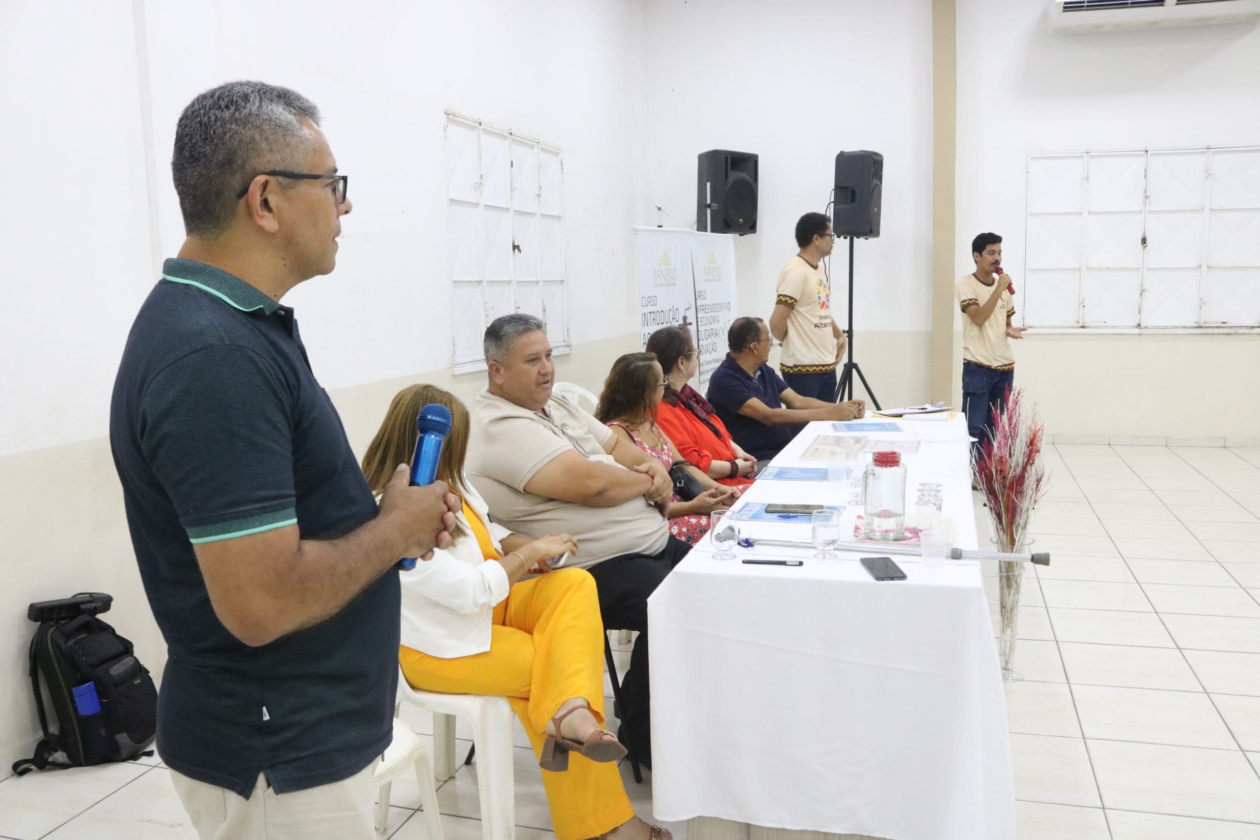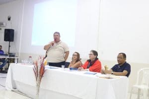 A mesa de abertura do seminário contou com a presença de Andreia Cristina, coordenadora do Projeto Paneiro; Marcos Brito, Superintendente do Ministério do Desenvolvimento Agrário no Amazonas; Renildo Viana, do Alternativo de Petrópolis; Antônio de Oliveira Nicácio, responsável pelo Projeto Paneiro na Paróquia São Pedro Apóstolo; e Monsenhor Sabino de Andrade, pároco de São Pedro. Todos reforçaram a importância da economia solidária como uma alternativa viável para a promoção do bem-estar das comunidades.