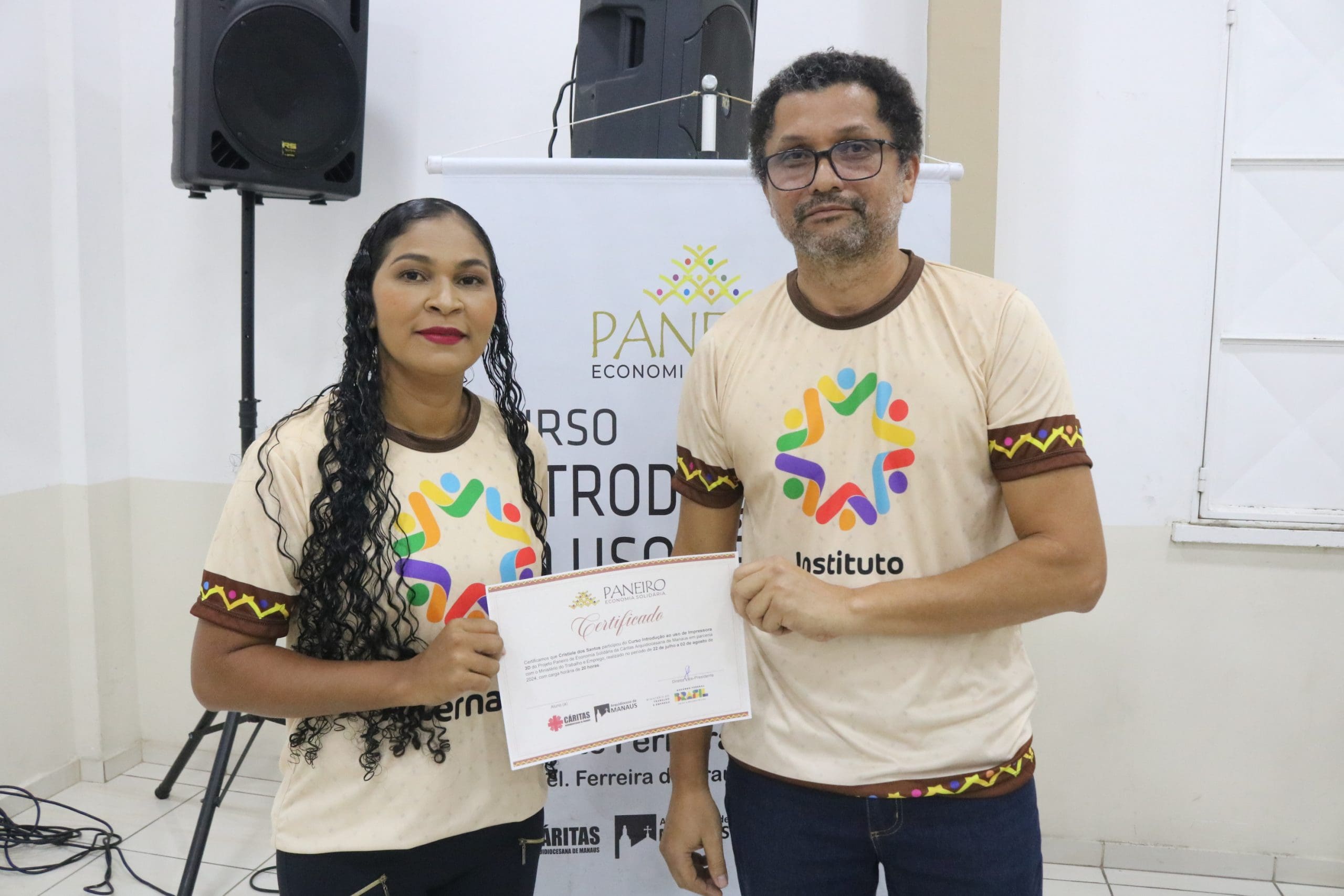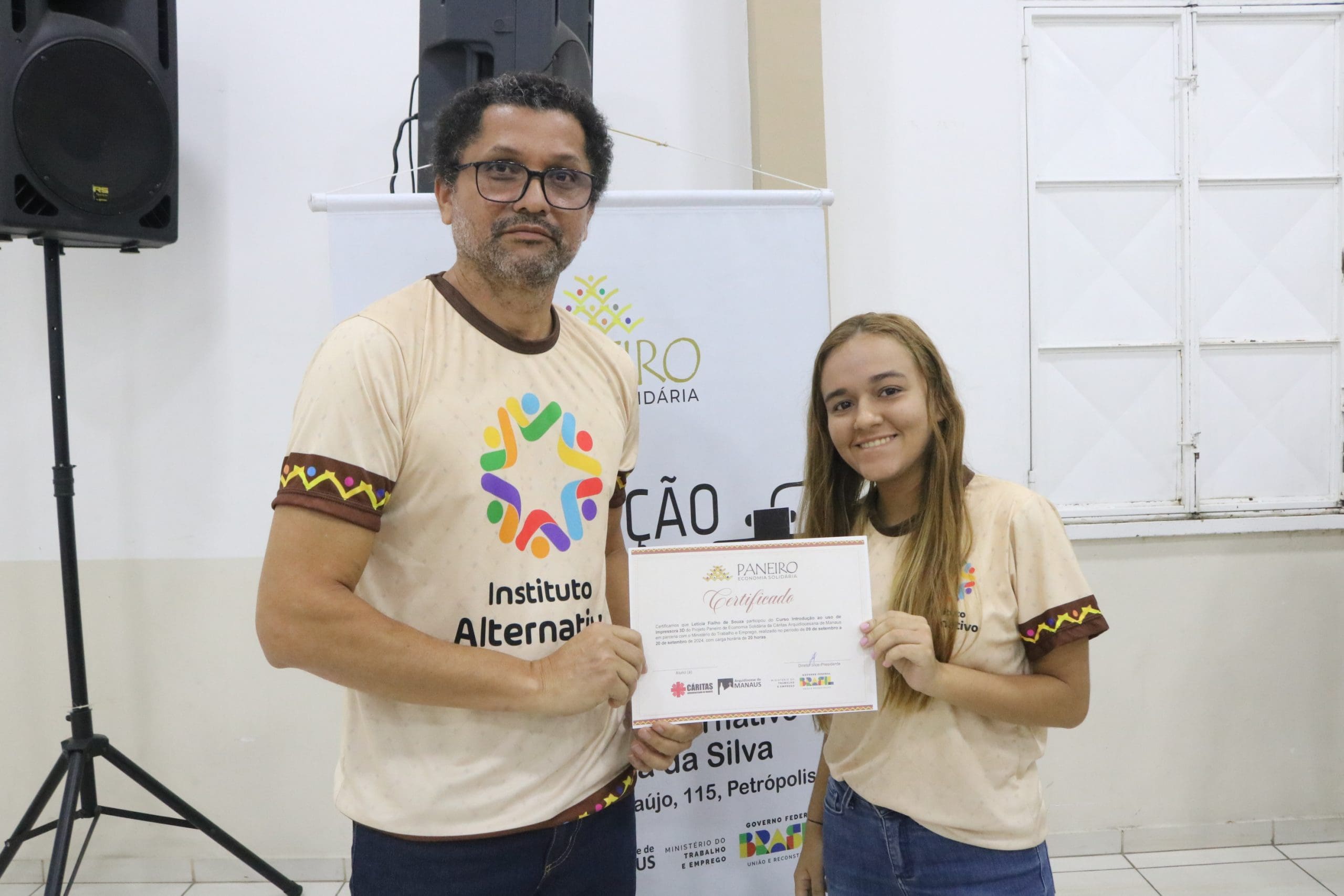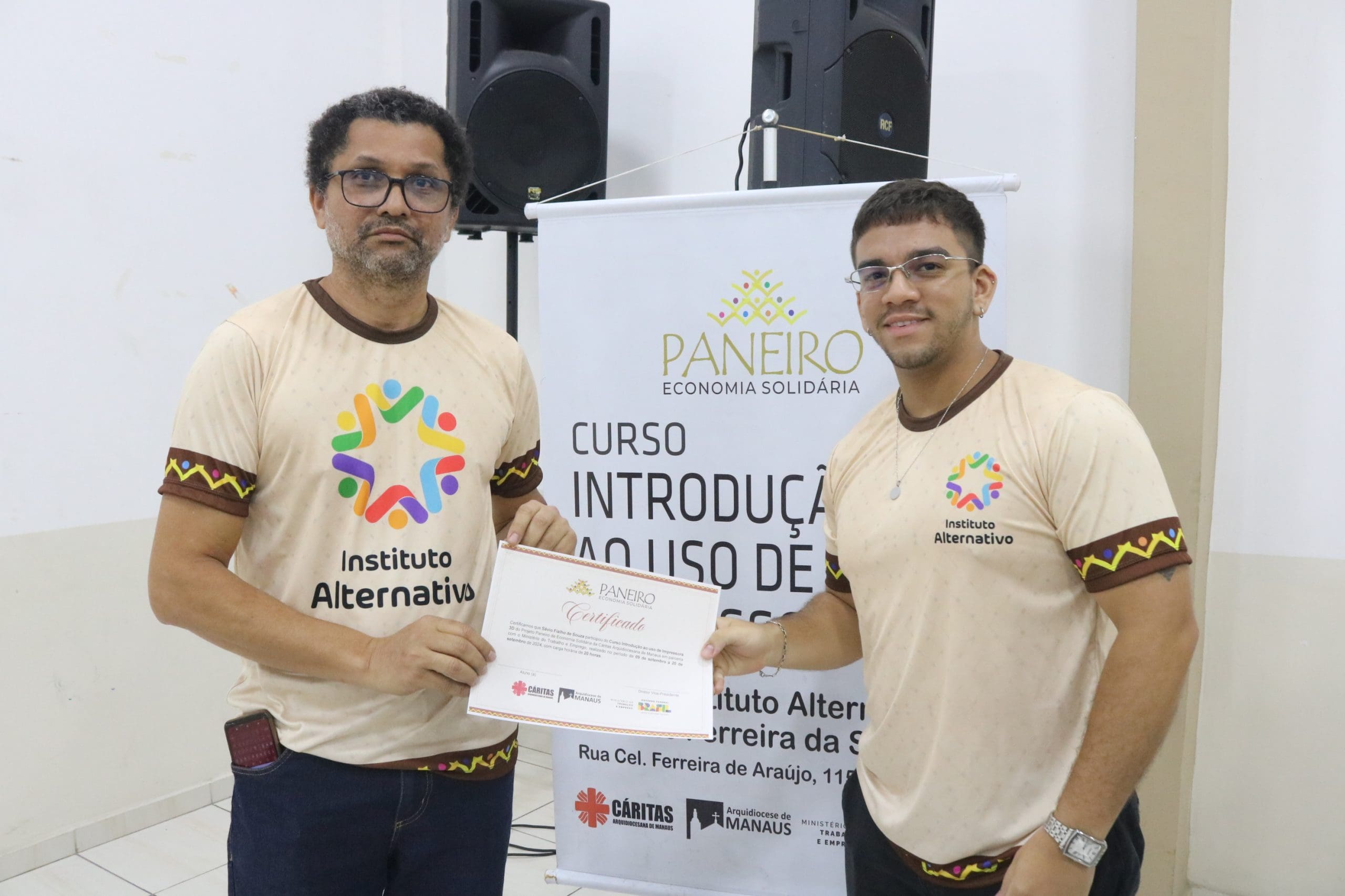 Após as palestras, houve a entrega de certificados para os participantes dos cursos de Economia Solidária e Inovação, oferecidos pela Paróquia São Pedro e Paróquia São Francisco, além do curso de Impressora 3D do Alternativo de Petrópolis. Essa iniciativa não apenas reconheceu o esforço dos alunos, mas também incentivou a continuidade do aprendizado e da aplicação prática dos conhecimentos adquiridos.