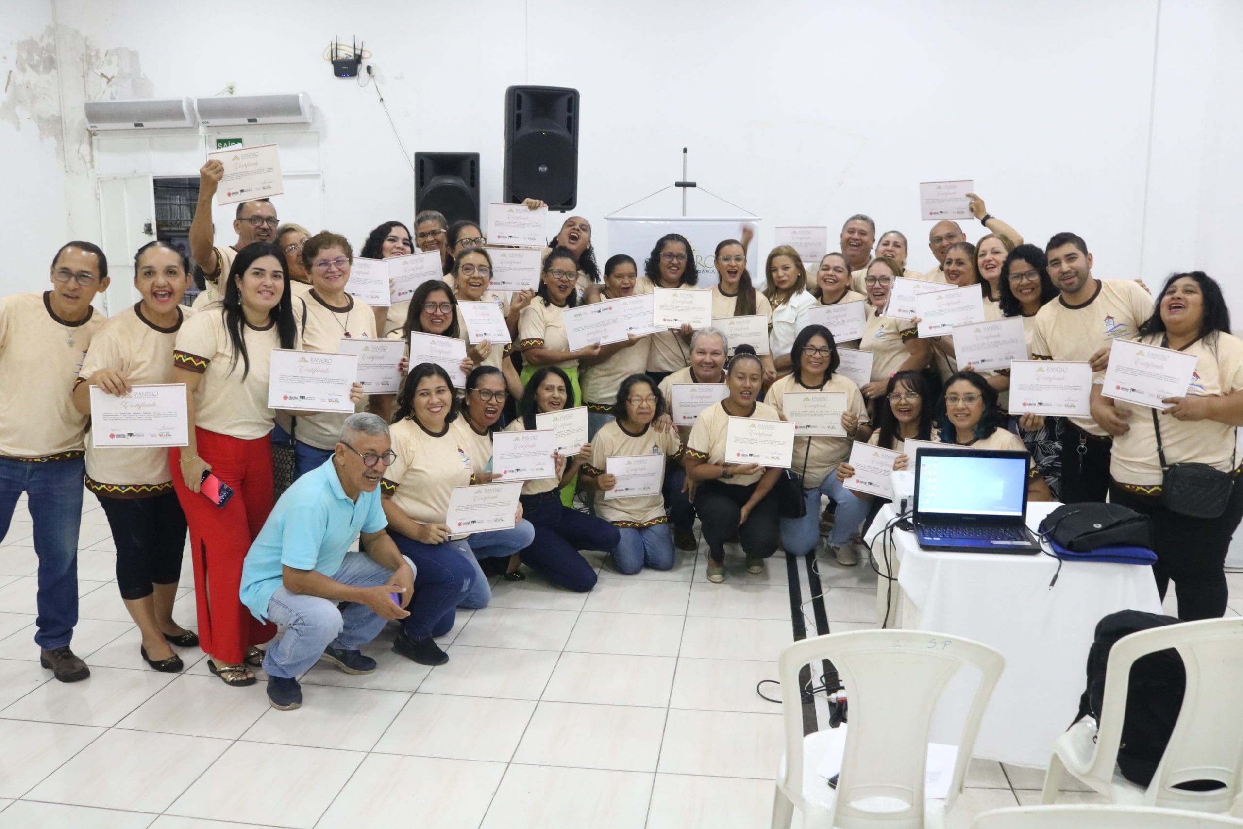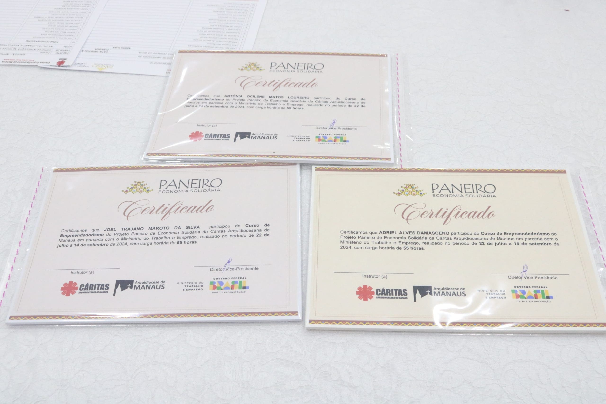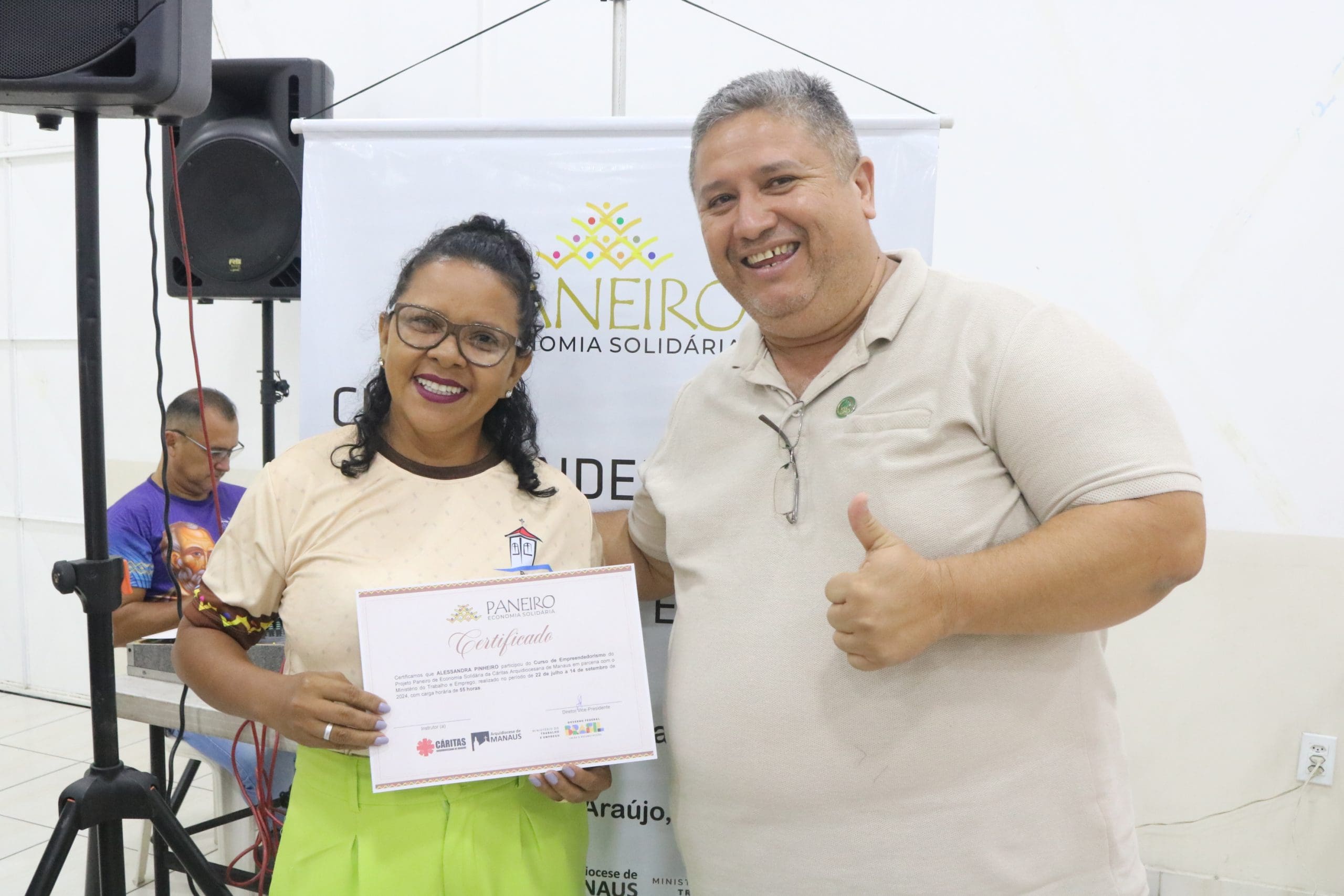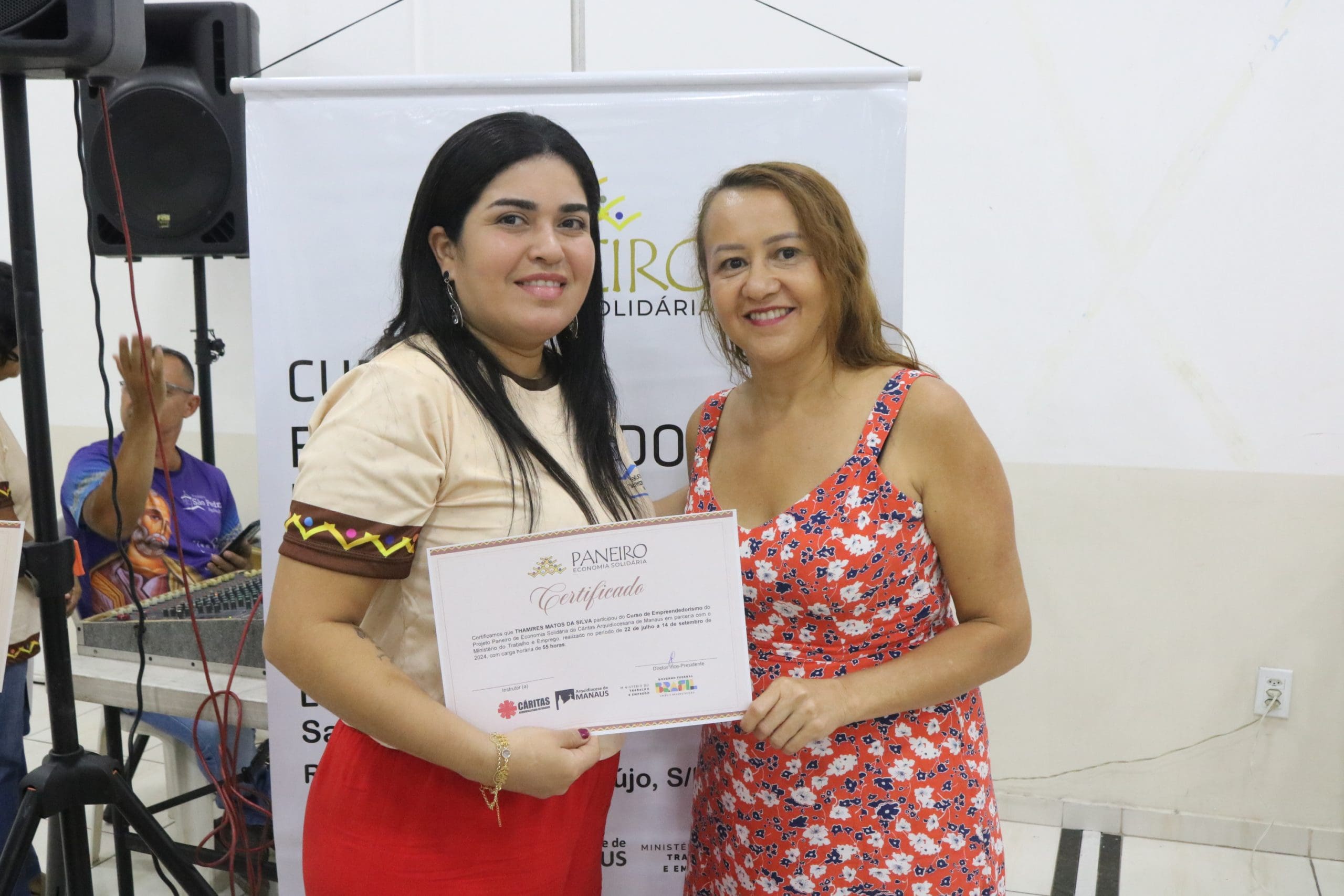 Após as palestras, houve a entrega de certificados para os participantes dos cursos de Economia Solidária e Inovação, oferecidos pela Paróquia São Pedro e Paróquia São Francisco, além do curso de Impressora 3D do Alternativo de Petrópolis. Essa iniciativa não apenas reconheceu o esforço dos alunos, mas também incentivou a continuidade do aprendizado e da aplicação prática dos conhecimentos adquiridos.