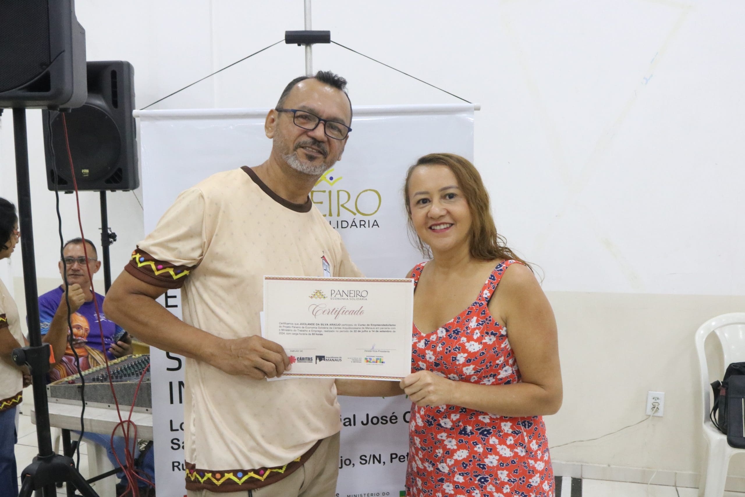 Na noite desta terça-feira, 24 de setembro, o Projeto Paneiro da Cáritas Arquidiocesana de Manaus realizou um seminário sobre Economia Popular Solidária, em parceria com a Paróquia São Pedro Apóstolo, Paróquia São Francisco de Assis e o Alternativo de Petrópolis. O evento, que aconteceu no salão pastoral da Paróquia São Pedro, contou com a presença de alunos dos cursos realizados em parceria com as instituições.